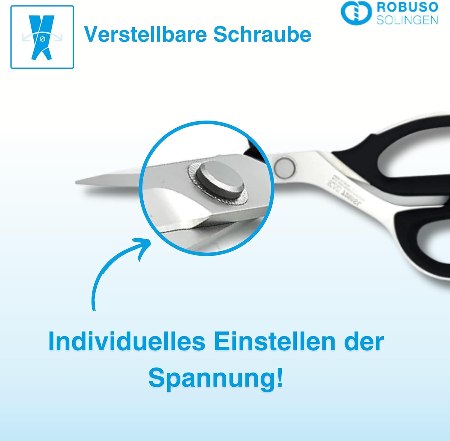Alle Scheren sind mit verstellbaren Kronenschrauben ausgestattet, die ein einfaches Einstellen der Spannung ermöglichen.